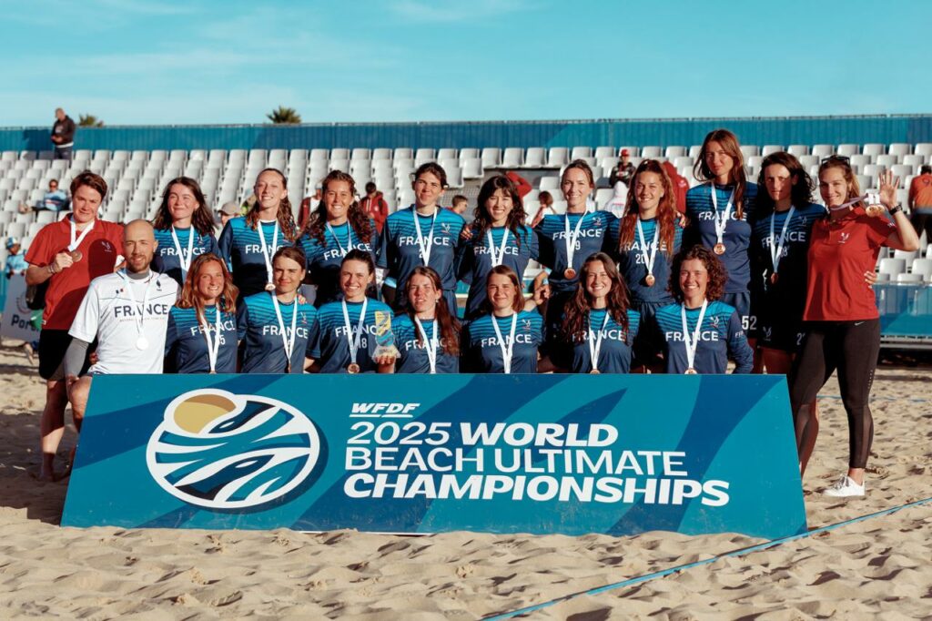 Équipe Féminine : Troisième place d’anthologie après un parcours exceptionnel et une victoire en petite finale contre le Canada. Elles passent très proche de la finale, avec une demi historique à plusieurs titres contre les USA (championne du Monde 2025), pour une défaite à l’universe. En somme une première médaille mondiale pour l’ultimate féminin sénior, en bronze certes mais pourtant bien dorée.
